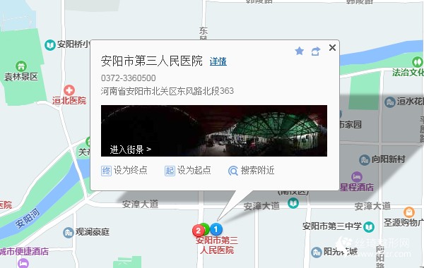 安陽汽車站420米向西北步行 到 火車站7站乘 24路 (漳澗方向) 到 三醫(yī)院120米向南步行 到 安陽市第三人民醫(yī)院