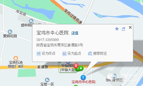 寶雞站390米向西步行 到 火車站8站乘 37路 (植物園方向) 到 中心醫(yī)院120米向西步行 到 寶雞市中心醫(yī)院