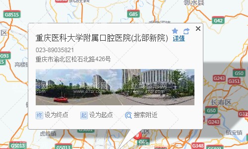 重慶站800米向西北步行 到 國際村10站乘 118路 (余松路方向) 到 龍山路590米向北步行 到 重慶醫(yī)科大學附屬口腔醫(yī)院(北部新院)重慶醫(yī)科大學附屬口腔醫(yī)院(北部新院)。