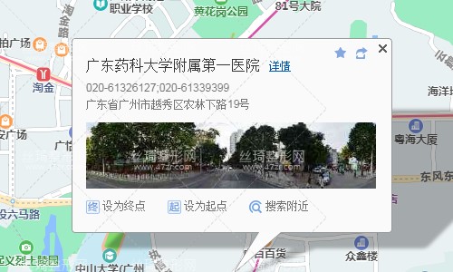 廣州南站11站乘 地鐵2號線 (嘉禾望崗方向) 到 海珠廣場4站乘 地鐵6號線 (香雪方向) 到 東山口C口 出站410米向北步行 到 廣東藥科大學附屬第一醫(yī)院,