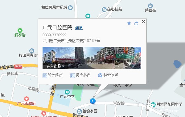 廣元站320米向西南步行 到 上西火車站9站乘 19路 (水岸華府方向) 到 廣元中學890米向東步行 到 廣元口腔醫(yī)院