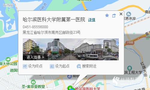 哈爾濱西站80米向西南步行 到 哈爾濱西站 出入口進站3站乘 地鐵3號線 (醫(yī)大二院方向) 到 醫(yī)大二院9站乘 地鐵1號線 (哈爾濱東站方向) 到 醫(yī)大一院 2口 出站120米向北步行 到 哈爾濱醫(yī)科大學附屬第一醫(yī)院