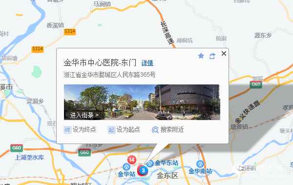 金華站100米向東北步行 到 火車站北廣場5站乘 303路支線 (錦林佛手園方向) 到 中心醫(yī)院290米向東南步行 到 金華市中心醫(yī)院-東門