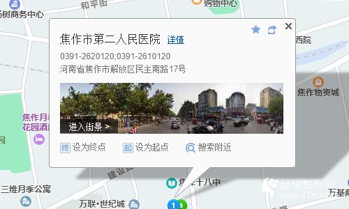 焦作站230米向西北步行 到 火車站1站乘 3路峪河口支線 (峪河口方向) 到 二醫(yī)院130米向南步行 到 焦作市第二人民醫(yī)院燒傷整形美容科
