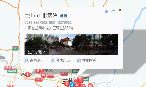蘭州汽車東站70米向南步行 到 汽車東站2站乘 36路 (新港城公交站方向) 或 6路到 東方紅廣場北口180米向東步行 到 東方紅廣場北口1站乘 140路 (西關什字方向) 到 東方紅廣場南口230米向南步行 到 蘭州市口腔醫(yī)院
