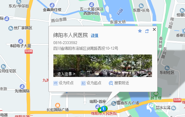 綿陽站-進站口210米向南步行 到 火車客站廣場6站乘 35路 (沈家壩開元醫(yī)院方向) 到 東方紅大橋160米向北步行 到 綿陽市人民醫(yī)院