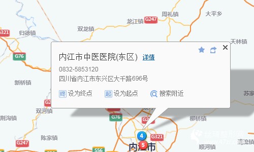 內(nèi)江站110米向東南步行 到 火車站3站乘 201路 (東站轉(zhuǎn)盤方向) 到 搬運站1米向東南步行 到 內(nèi)江市中醫(yī)醫(yī)院