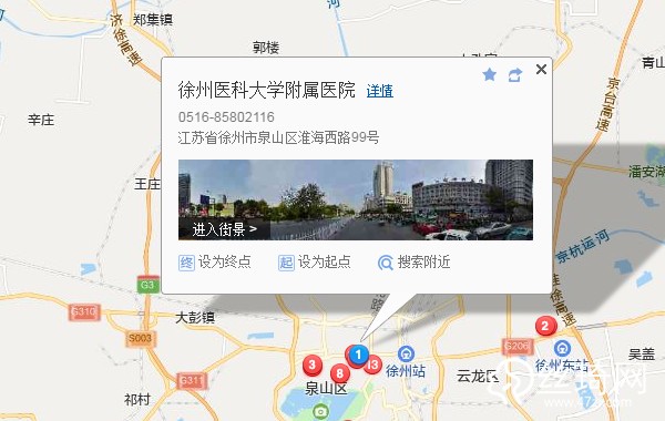 淮西客運站(站內停車)120米向東步行 到 淮西客運站7站乘 35路 (風華園首末站方向) 或 59路北環(huán) 到 市二院西門50米向北步行 到 徐州醫(yī)科大學附屬醫(yī)院