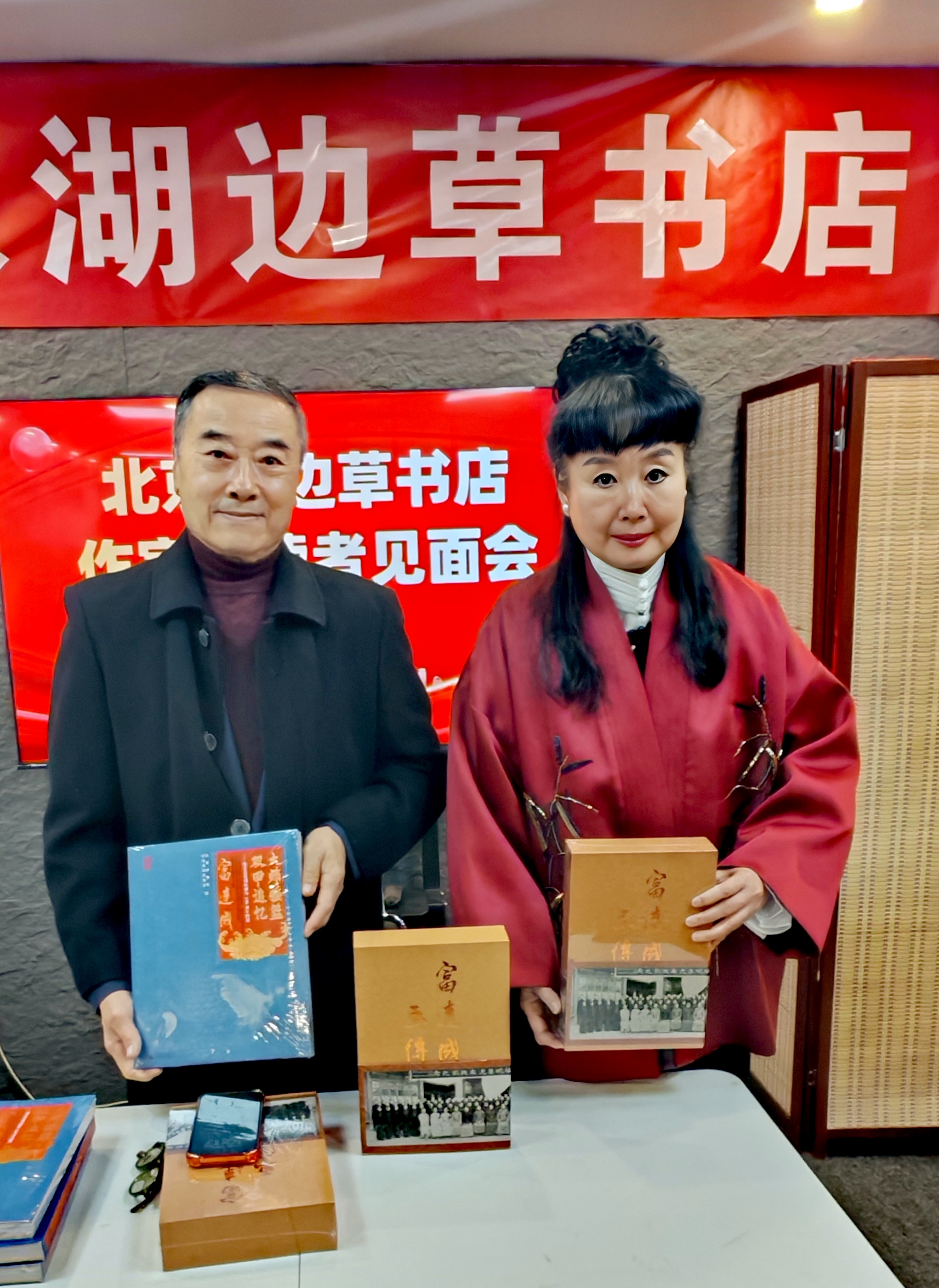 司馬小萌北京號(hào)|京劇名家主編《富連成畫傳》出版發(fā)行,夫婦二人到湖邊草書店捐書并現(xiàn)場(chǎng)獻(xiàn)藝