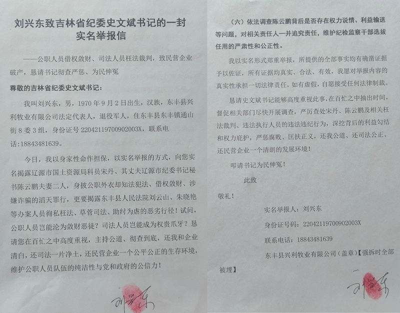 公職人員借權(quán)斂財司法人員枉法裁判?吉林東豐一民營企業(yè)致信省紀(jì)委求救