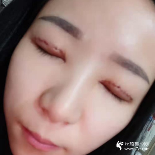 雙眼皮手術(shù)當(dāng)天: