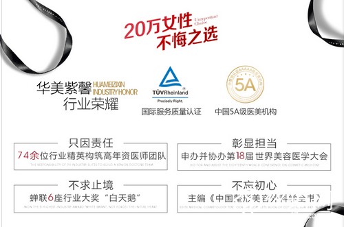 四川華美紫馨醫(yī)學(xué)美容醫(yī)院的整形醫(yī)生的團(tuán)隊(duì)很強(qiáng)大,都是畢業(yè)于好的大學(xué),在每一項(xiàng)手術(shù)時(shí),都會(huì)格外的注意,深怕出現(xiàn)意外現(xiàn)象,以熱情的服務(wù)宗旨,竭盡全力的為廣大愛美人士提高更高端的變美態(tài)度,自建院以來獲得很多的榮譽(yù)證書,被譽(yù)為世界華商大會(huì)指定醫(yī)學(xué)美容機(jī)構(gòu)。該醫(yī)院堅(jiān)持幾十年如一日的手術(shù)方針來為更多的求美者變美的愿望,以的技術(shù),的服務(wù)標(biāo)準(zhǔn),較人性化的合理收費(fèi),為準(zhǔn)則,秉承軍隊(duì)的作風(fēng)以及精湛的手術(shù)技術(shù),贏得了很多人的贊美,同時(shí)也受到很多人慕名而來實(shí)施變美,由此看來醫(yī)院的服務(wù)終止是多么的熱情。