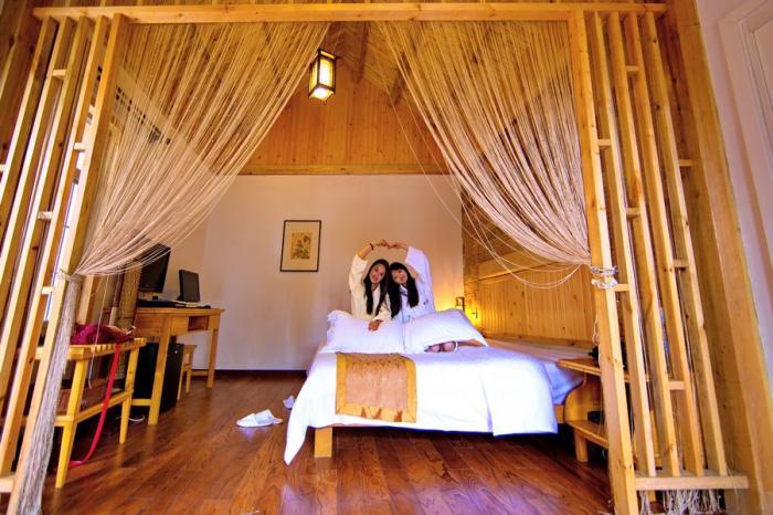 木蘭天池是國(guó)家級(jí)森林公園,幽靜的山林之中,一幢幢彩色木屋依山勢(shì)而建,造型各異,色彩亮麗,房間寬敞明亮,身處其中,猶如投入了清泉翠林的懷抱。在林中,日賞山景,夜枕蟲(chóng)鳴。晨起吹吹山間的清風(fēng),入夜觀賞滿天的星斗,一定十分愜意、舒爽。