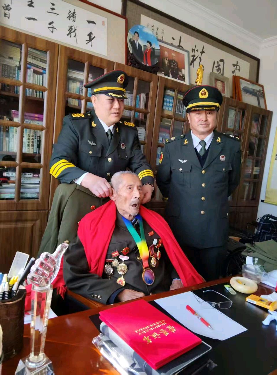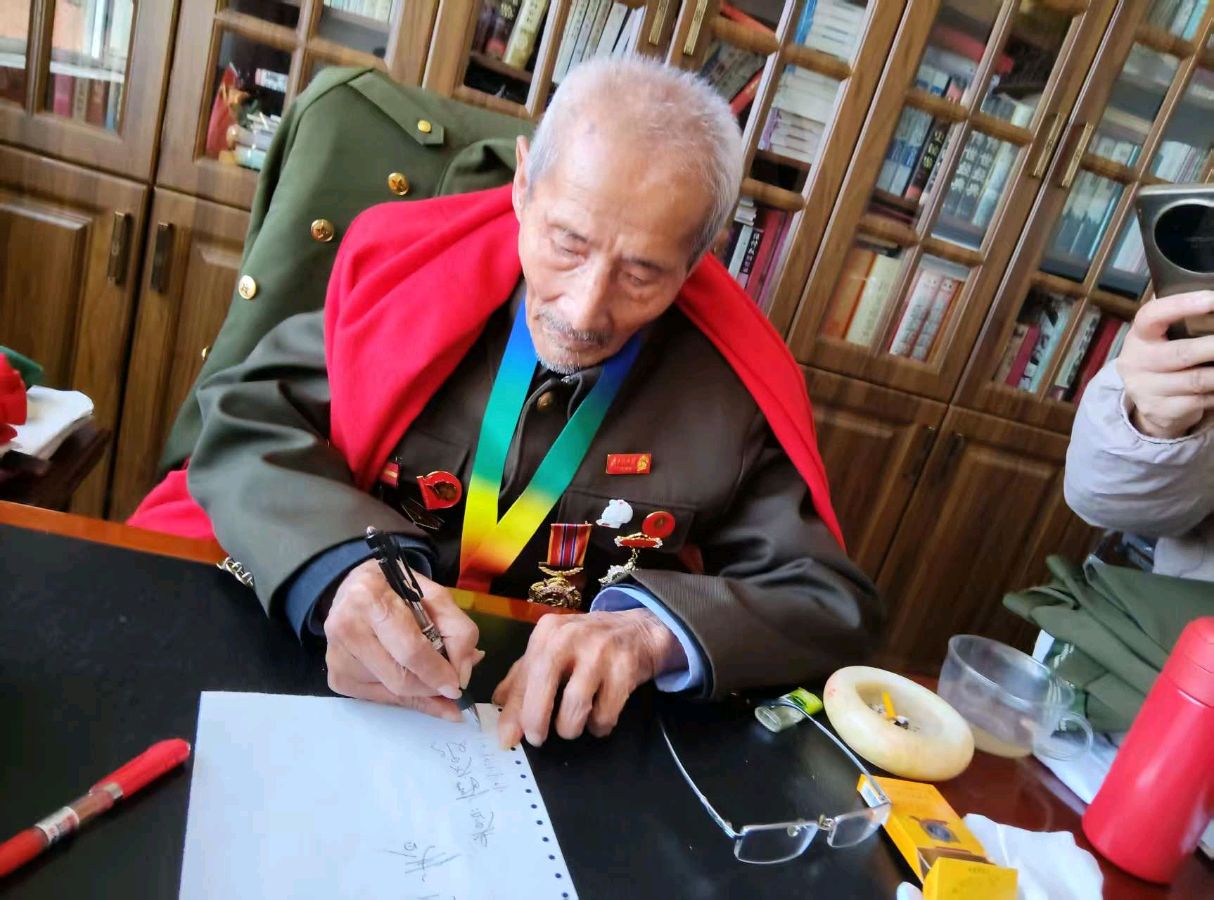 走進(jìn)蔣慶泉老英雄的家中,墻上的書法作品“一身轉(zhuǎn)戰(zhàn)三千里,一劍曾當(dāng)百萬師”格外醒目,書架上整齊排列的書籍與老照片,無聲訴說著他波瀾壯闊的一生。作為抗美援朝戰(zhàn)場(chǎng)上的通信兵,蔣慶泉在1952年的石硯洞北山戰(zhàn)斗中,面對(duì)敵人的猛烈進(jìn)攻,在陣地即將失守的危急時(shí)刻,毅然向指揮部喊出“向我開炮”的壯烈誓言。這一震撼人心的吶喊,后來被藝術(shù)化地呈現(xiàn)在電影《英雄兒女》中,成為幾代中國(guó)人心中的英雄記憶。