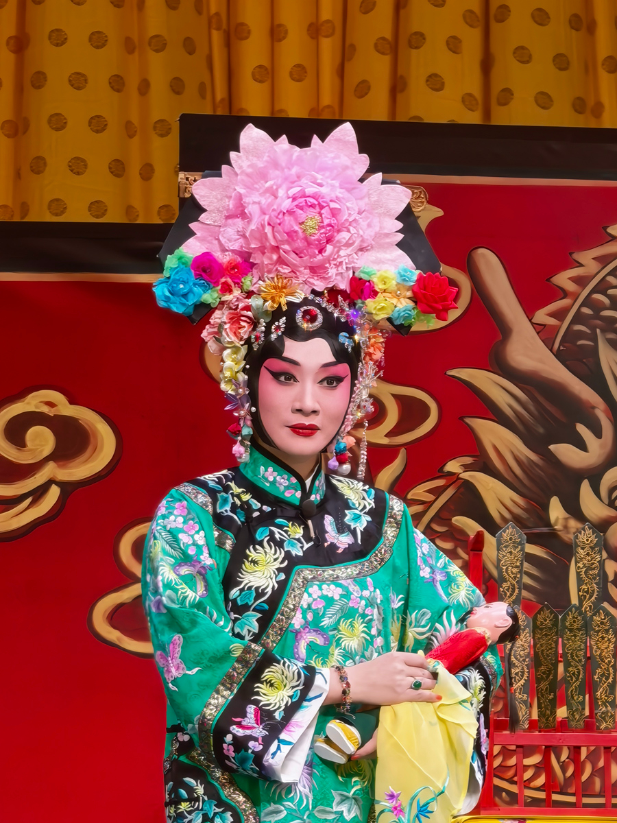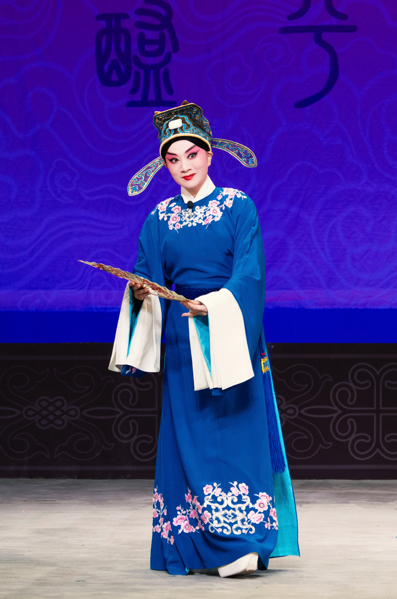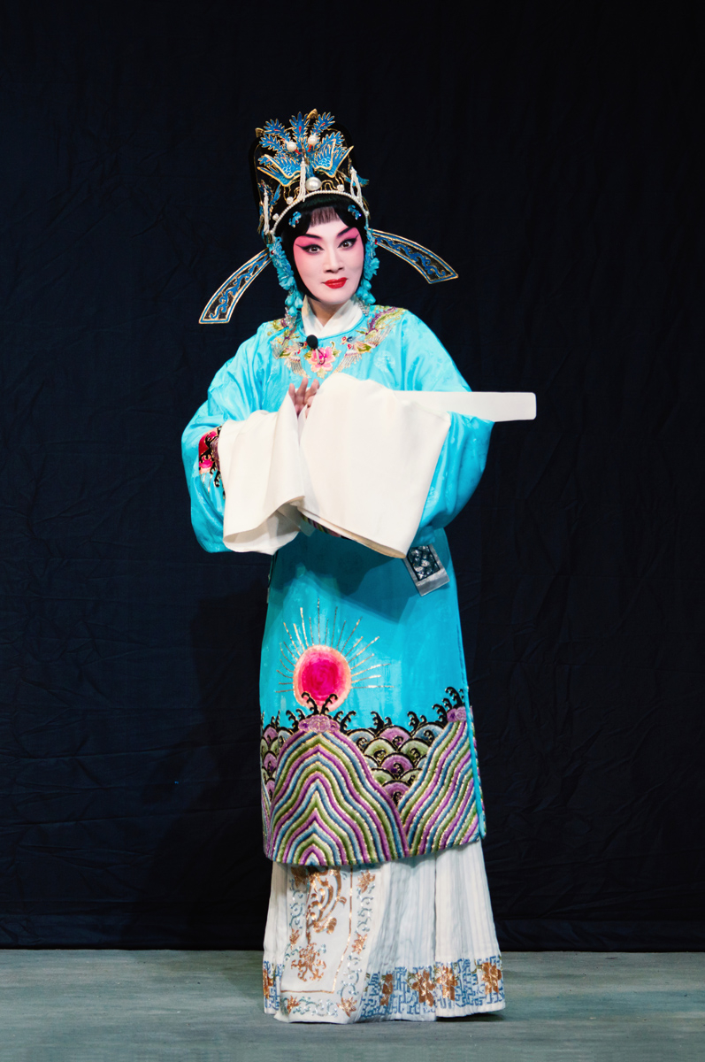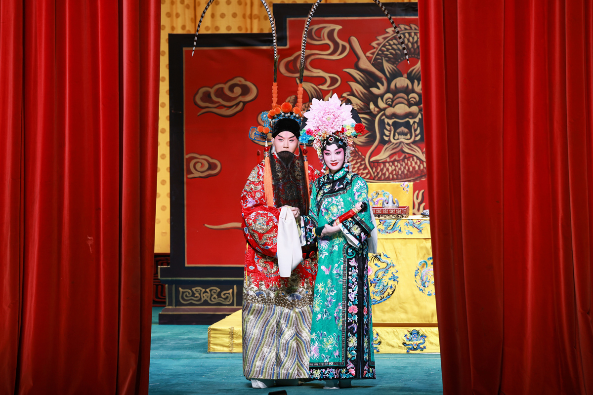 路潔為習(xí)得該劇精髓,自2020年起,每周專程赴天津向京劇名家王艷學(xué)習(xí)了三年。王艷老師對(duì)氣口、勁頭、身段等細(xì)節(jié)的嚴(yán)苛要求,讓路潔精準(zhǔn)把握了謝瑤環(huán)的人物特質(zhì)。作為生旦兩挑的劇目,路潔在劇中既需展現(xiàn)旦行的端莊柔美,又要詮釋小生的軒昂英氣。演出開(kāi)場(chǎng),悶簾一聲“來(lái)了”便收獲碰頭彩,身著巡按紅蟒官服的亮相英氣勃發(fā),完美詮釋了正義化身的形象?!邦^公堂”一折中,堂審武宏的大段念白剛勁有力、張弛有度,將謝瑤環(huán)不畏權(quán)奸的凜然正氣展現(xiàn)得淋漓盡致;“花園”一場(chǎng)則盡顯女兒家的嬌羞柔情,“謝瑤環(huán)深宮九年整” 的南梆子唱腔婉轉(zhuǎn)旖旎,配合遮面團(tuán)扇的細(xì)膩身段與小圓場(chǎng)走位,將與袁行健的情意綿綿刻畫得美不勝收,與小生演員劉明哲的默契配合贏得滿堂喝彩。