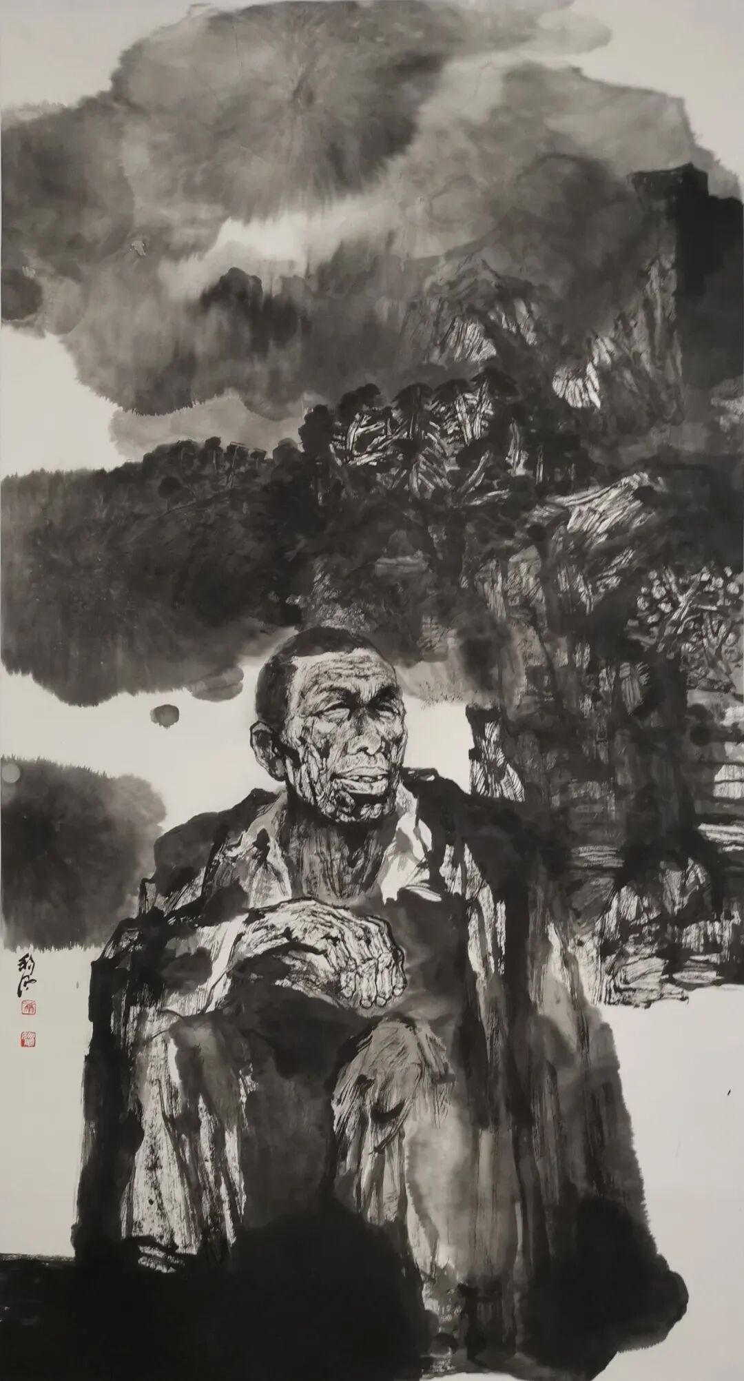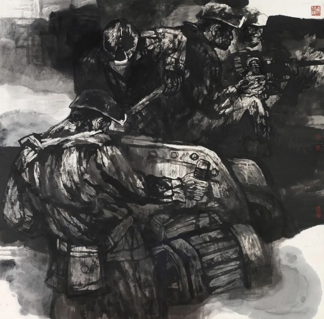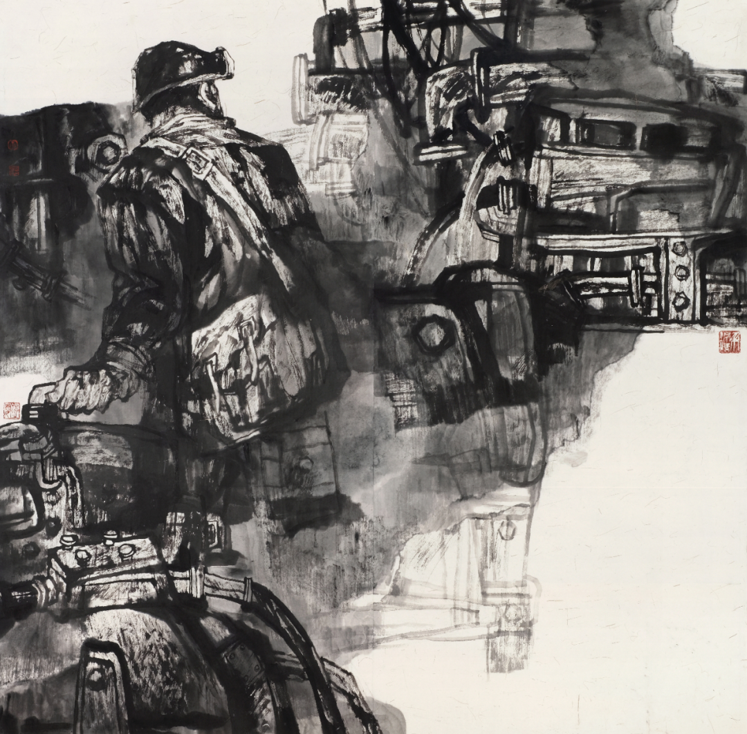 回望其藝術(shù)創(chuàng)作的早期歲月,礦山成為他靈感的富礦。彼時(shí),他將深情的目光投向自己身邊的礦工群體,創(chuàng)作出了一系列震撼人心的大型水墨人物畫。這些作品在構(gòu)圖上大開大合,似有千鈞之力;用筆豪放,如疾風(fēng)驟雨;用墨濃黑厚重,若烏云壓城。畫中的礦工們,仿若從礦井深處走來(lái)的鋼鐵戰(zhàn)士,肌肉線條如刀刻般剛勁,堅(jiān)毅的表情寫滿對(duì)生活的不屈,深邃的眼神中透著對(duì)未來(lái)的堅(jiān)定執(zhí)著。他們不僅是平凡的勞動(dòng)者,更是時(shí)代的脊梁,撐起了一個(gè)時(shí)代的重量。康移風(fēng)先生以豪放深情的筆觸,將對(duì)礦工群體的深切關(guān)懷與崇高敬意,融入每一處線條、每一抹墨色,讓觀者仿佛能觸摸到礦井下的艱辛,感受到礦工們鋼鐵般的意志。