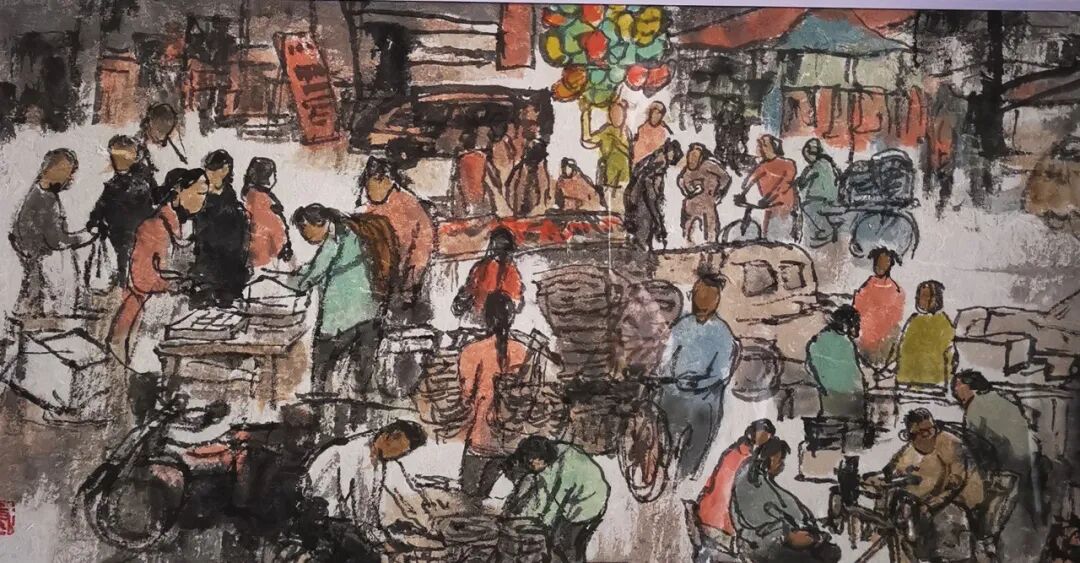 近年來(lái),他領(lǐng)銜主創(chuàng)的《萬(wàn)古長(zhǎng)歌·湖南史前文明圖卷》,更是一次大膽而成功的跨界融合。作品將湖南地區(qū)人類文明的起源追溯至約50萬(wàn)年前,以七大板塊系統(tǒng)完整地展現(xiàn)了湖南史前文明的發(fā)展脈絡(luò),每一個(gè)板塊都有詳實(shí)的考古實(shí)證作為堅(jiān)實(shí)支撐。在藝術(shù)表現(xiàn)上,他運(yùn)筆蒼茫渾厚,巧妙地將東方美學(xué)思想與現(xiàn)代繪畫技巧熔于一爐。畫中人物栩栩如生,仿佛從遠(yuǎn)古走來(lái);場(chǎng)景描繪細(xì)致入微,一草一木、一石一器皆蘊(yùn)含著古老的智慧;色彩古樸典雅,散發(fā)著歲月的韻味。更令人可喜的是,他有機(jī)地將人物、山水、花鳥畫的創(chuàng)作手法融會(huì)貫通,使整幅作品成為不可多得的藝術(shù)精品。此次展覽中的巨幅《大唐中興頌》《高山流水》等作品,更是康移風(fēng)先生藝術(shù)造詣的生動(dòng)彰顯。《大唐中興頌》以顏真卿的同名摩崖石刻為靈感之源,康移風(fēng)先生以大氣磅礴的筆觸,如椽巨筆般勾勒出大唐中興時(shí)期的輝煌氣象。畫面中,人物眾多卻神態(tài)各異,或莊嚴(yán)威武,盡顯大唐的雄渾氣魄;或從容自信,流露著盛世的雍容氣度。他們的服飾、器具等細(xì)節(jié)刻畫入微,仿佛能讓人觸摸到那個(gè)時(shí)代的溫度。畫作的構(gòu)圖極具匠心,前景人物與背景山水相互呼應(yīng)、相得益彰,既突出了主題的莊重,又營(yíng)造出深遠(yuǎn)遼闊的空間感,展現(xiàn)出康移風(fēng)先生對(duì)歷史題材獨(dú)特而深刻的理解與把握能力,似一部壯麗的史詩(shī),訴說(shuō)著大唐的榮耀。《高山流水》則是他對(duì)傳統(tǒng)題材的創(chuàng)新詮釋。他大膽采用大筆濃墨的表現(xiàn)手法,賦予作品強(qiáng)烈的視覺(jué)沖擊力,如同一記重錘,敲擊在觀者的心弦上。畫面中,巍峨的高山拔地而起,似巨人般矗立天地間;山間云霧繚繞,如輕紗般輕盈飄逸;溪水從高處奔騰而下,與山石激烈碰撞,激起潔白的水花,似珍珠散落。溪水旁,兩位身著古裝的人物相對(duì)而坐,一人輕撫琴弦,一人靜靜聆聽,他們神態(tài)悠然自得,仿佛已與天地融為一體,沉浸在音樂(lè)的浩瀚海洋中??狄骑L(fēng)先生以細(xì)膩筆觸描繪人物,勾勒出他們內(nèi)心的寧?kù)o與祥和;又以粗獷線條勾勒山水輪廓,展現(xiàn)出大自然的雄渾壯美,將人物與自然完美融合,生動(dòng)詮釋了“高山流水覓知音”的幽遠(yuǎn)意境,似一首悠揚(yáng)的古曲,余音繞梁。這次還展出了他部分速寫和連環(huán)畫手稿,其中的《小鎮(zhèn)集市速寫》最為鮮活,這也是康移風(fēng)先生扎根生活的生動(dòng)寫照。一幅幅畫作中,濃郁的生活氣息撲面而來(lái),他以靈動(dòng)的筆觸描繪出集市上熱鬧非凡的場(chǎng)景。畫面里,商販們熱情地大聲吆喝,此起彼伏的叫賣聲仿佛縈繞在耳畔;顧客們專注地挑選商品,眼神中透著對(duì)生活的熱愛(ài);各種攤位上擺滿琳瑯滿目的物品,讓人目不暇接。他巧妙運(yùn)用疏密有致的構(gòu)圖,將集市的嘈雜與活力展現(xiàn)得淋漓盡致,讓觀者仿佛身臨其境。
