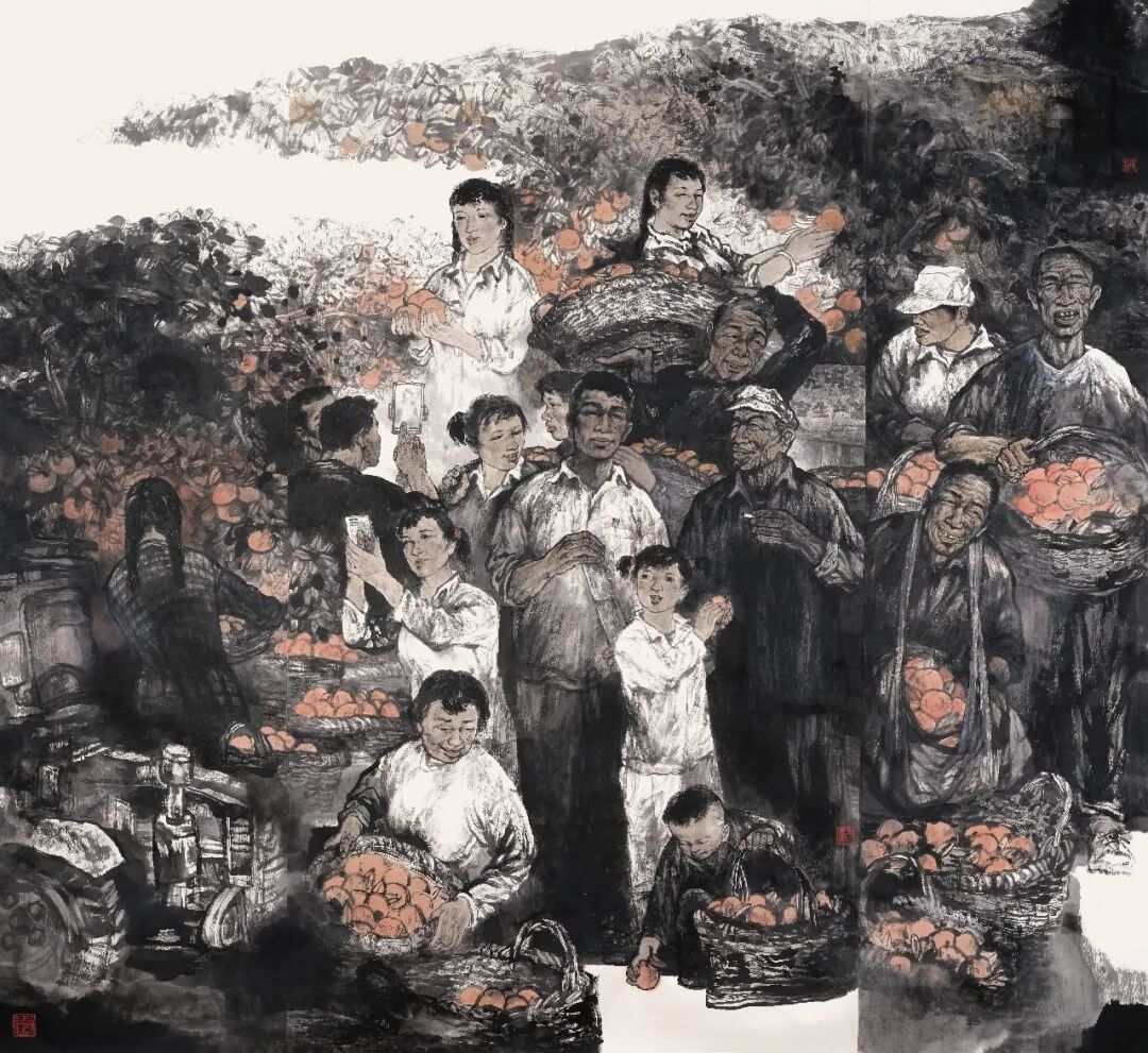 與康移風(fēng)先生相識(shí)30多年了,他退休后定居長(zhǎng)沙,我們的往來(lái)愈發(fā)頻繁。在各類公益活動(dòng)中,總能看到他揮毫潑墨、勇挑重?fù)?dān)的身影,“勞動(dòng)模范”的稱號(hào)于他而言實(shí)至名歸。更令人贊嘆的是,他還有著一副“金嗓子”,無(wú)論是婉轉(zhuǎn)悠揚(yáng)、充滿鄉(xiāng)土氣息的民歌,還是氣勢(shì)恢宏、震撼人心的美聲,皆能張口即來(lái)。在采風(fēng)寫生的山野間,在文人雅聚的廳堂里,他那嘹亮的歌聲總是最動(dòng)人的樂(lè)章,人們笑稱他是被繪畫“耽誤”的歌唱家。殊不知,這份瀟灑豪情早已化作靈感源泉,悄然融入他的畫作之中。在當(dāng)代中國(guó)畫壇,康移風(fēng)先生以獨(dú)特的藝術(shù)特色閃耀其中。他始終在現(xiàn)實(shí)主義創(chuàng)作道路上執(zhí)著前行,以畫筆為媒,將廣闊的社會(huì)生活、鮮活的時(shí)代脈搏盡收畫中。其作品題材之豐富,恰似一幅徐徐展開的壯麗長(zhǎng)卷,描繪出人間百態(tài)與時(shí)代風(fēng)云。