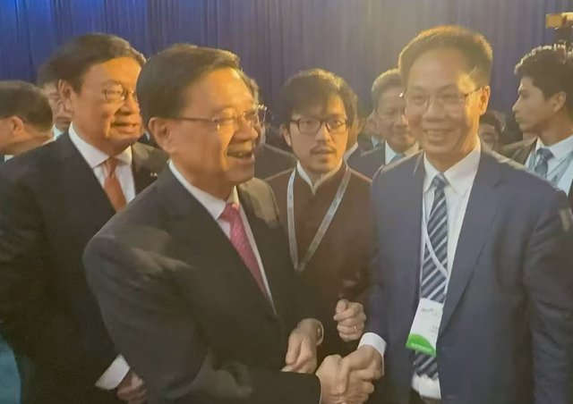 第十屆“一帶一路”高峰論壇上,葉志聰(右一)與香港特首李家超親切握手