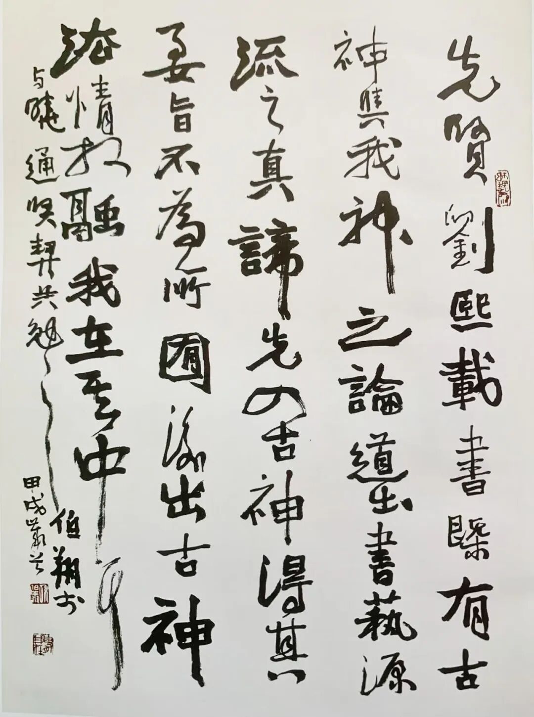 1958年生于天津市,中國書法家協(xié)會會員,南開書學(xué)研究會副會長,中國建設(shè)書法家協(xié)會理事,天津印社社員。1976年,未及弱冠,經(jīng)過層層篩選,以其聰穎的天資和良好的書寫基礎(chǔ),入選由我和寧書倫先生執(zhí)教的文革后天津市第一個青年書法學(xué)習(xí)班。自此三十余年潛心筆墨、硯池勤耕,從孫伯翔先生學(xué)習(xí)北碑,和寧書倫先生學(xué)習(xí)“二王”和趙體,追隨我學(xué)習(xí)行草篆隸和篆刻。先后從《膽巴碑》、《麓山寺》、《元略墓志》、《經(jīng)石峪》、《鐵山摩崖》、《楊淮表記》、索靖《出師頌》、《張遷碑》、《書譜》、《史平公》、《張猛龍》、《毛公鼎》、《嶧山碑》、二爨諸碑帖取法,日日臨池、不輟寒暑,功力日臻。其楷書雄強剛健、方圓并重;行書古樸灑脫、寧靜中寓動勢,飛揚中見沉穩(wěn);草書融二王、孫過庭,并融會貫通北碑風骨,勁健瀟灑、飄逸靈動;隸書大氣磅礴,厚實凝重。