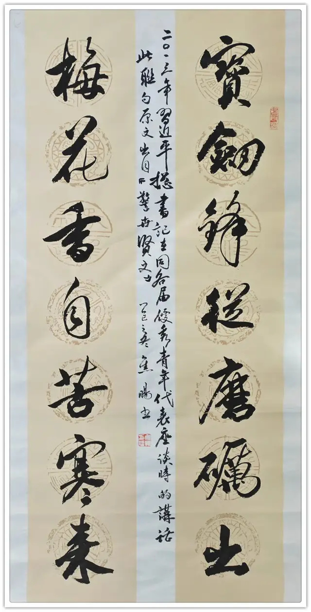 焦旸自幼受中華傳統(tǒng)文化熏陶,臨習歷代經(jīng)典碑帖,傳統(tǒng)功底扎實。其書寫兼具鐵畫銀鉤的骨力與行云流水的節(jié)奏。作品氣韻既有豪放磅礴風神俊朗的灑脫之勢,又含深沉古樸的清潤秀雅之韻。其作品風格理念淬煉顯獨特的地域精神風貌,宛若新疆雄渾的高山雪峰、蒼茫的大漠戈壁以及具有頑強生命力的胡楊精神,融化為筆墨情感語言,表達情懷。