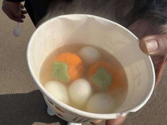 “柿子元宵”、水果、小吃溫情派送。金黃色的柿子元宵,不僅象征著團(tuán)圓甜蜜,更取其“柿柿如意”的美好諧音寓意。一碗碗熱氣騰騰的元宵送到村民和游客手中,傳遞著深深的感恩之情和對新一年“萬事如意”的誠摯祝福。